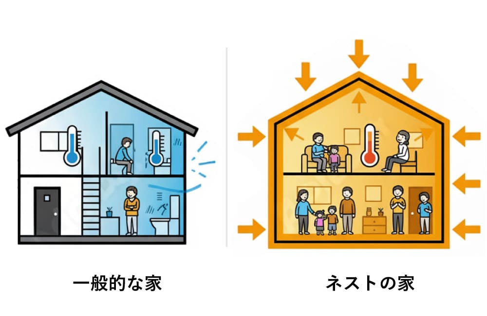 その鍵となるのが、ネストが誇る高気密高断熱の家です。
