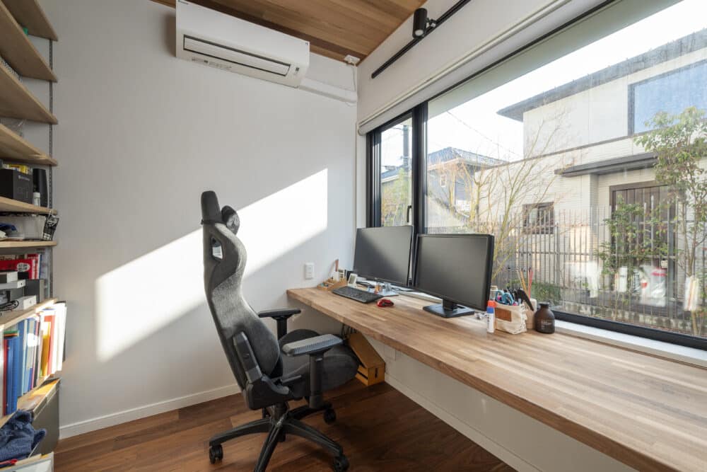 住まいの性能だけでなく、デザイン性や暮らしやすさにもこだわり、周囲の景色を取り込める2階LDKを中心に、家族で料理を楽しめる広いキッチン、庭を眺めながら作業できる書斎、家事動線を考慮した洗面脱衣室、十分な収納計画を要望されました。